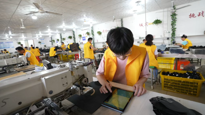 在当地一家公司的数字化生产车间,每个产品都配备物料清单模块,不但实现单个箱包产品从研发到生产的协同运作,而且把原材料利用率提高到94%。每一笔订单在交货前都可以实现动态管理,数字化生产让公司运营更加透明、高效。