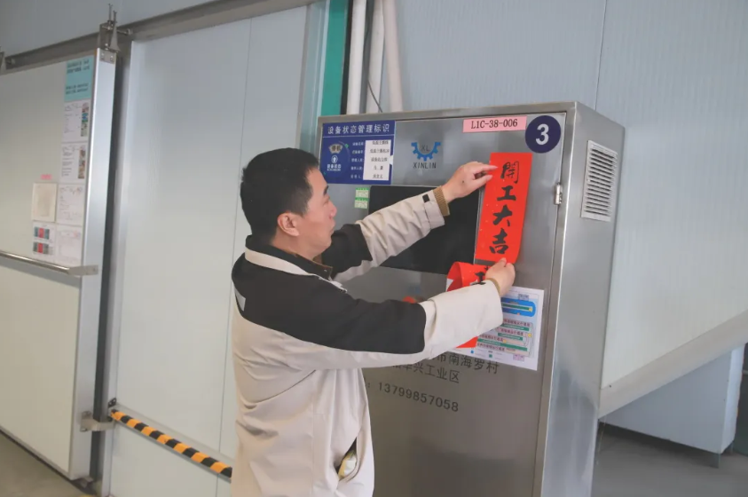 最后,公司管理人员走进生产车间,为主要生产设备张贴“开工大吉”红纸春联。四字春联贴于机器显眼处,寓意贴红启运,祝愿设备运转顺畅、生产高效有序。