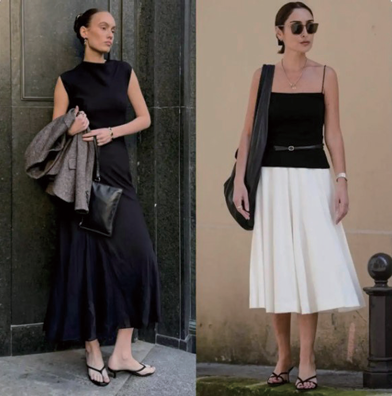 高跟鞋精致优雅充满了 女人味,不过日常出街,会 给人一种过于成熟和太严肃 的感觉。用高跟的凉拖鞋取 代传统高跟鞋,搭配裙子就 能够保留着优雅大气,同时 又多了些松弛随意,更实用!