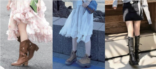 (三)裙子+皮靴:帅气时髦风