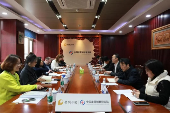 3月2日,Tapestry集团产品开发高级副总裁林青、技术开发高级副总裁David Wright、中国区副总裁孙静等一行6人到访中国皮革制鞋院开展合作交流。中国皮革制鞋院院长王文琪,副院长丁志文及相关部门负责人参加交流,双方围绕可持续发展、国际标准、检测技术等议题深入对接,共促皮革制鞋行业高质量、绿色化发展。