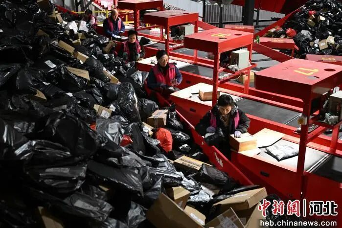 工人分拣即将发往全国各地的快递包裹。 冯云 摄