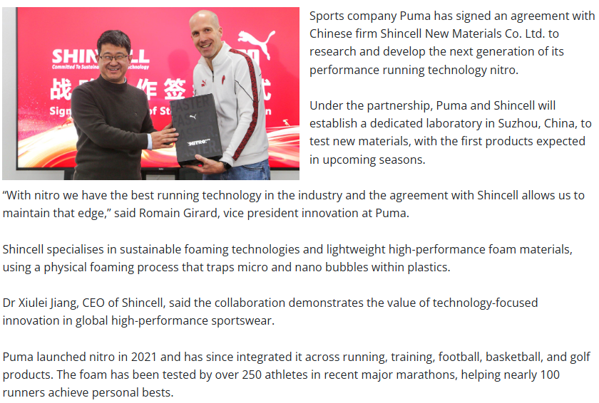 Puma and Shincell launch collaboration on running foam