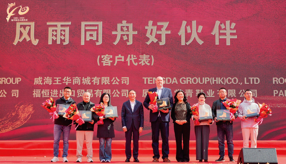 李玉中在致辞中指出,作为国家级高新技术企业,海宇公司聚焦高端防护领域,首创防火耐高温特种鞋制造技术,填补行业空白,多次刷新全球最高防护性能指标,用技术创新打破“卡脖子”壁垒,彰显了中国制鞋企业的硬核实力。海宇的发展,是中国制鞋行业转型升级的生动缩影,其从区域品牌到“中国驰名商标”,从本土供应商到服务20多个国家和地区的国际伙伴,完美诠释了“专精特新”企业的成长路径。期待海宇公司以40周年为新起点,持续深耕技术创新,在环保材料应用、数字化供应链建设上再攀新高,发挥龙头作用,带动行业协同发展,共同提升中国制鞋产业的全球竞争力。