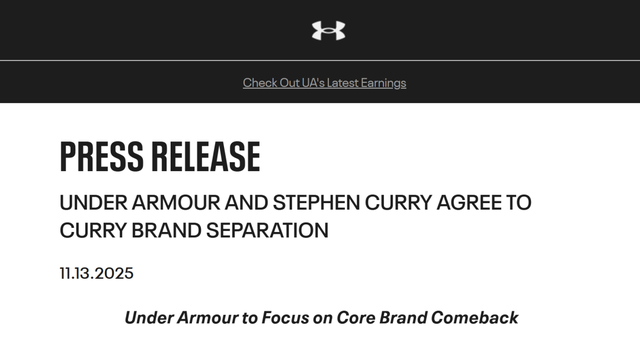 安德玛官网上与库里品牌的分割公告