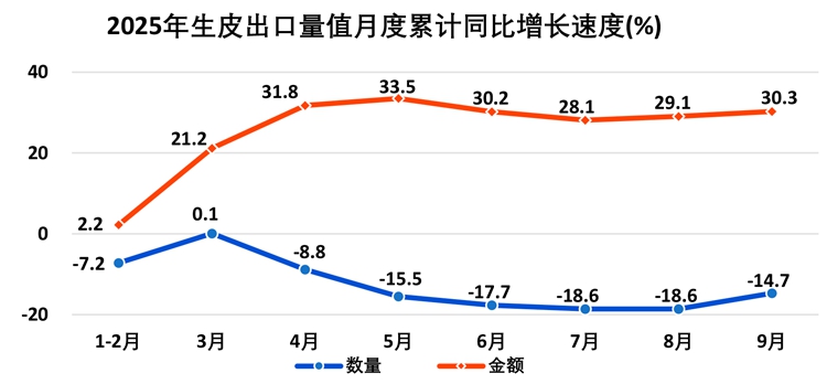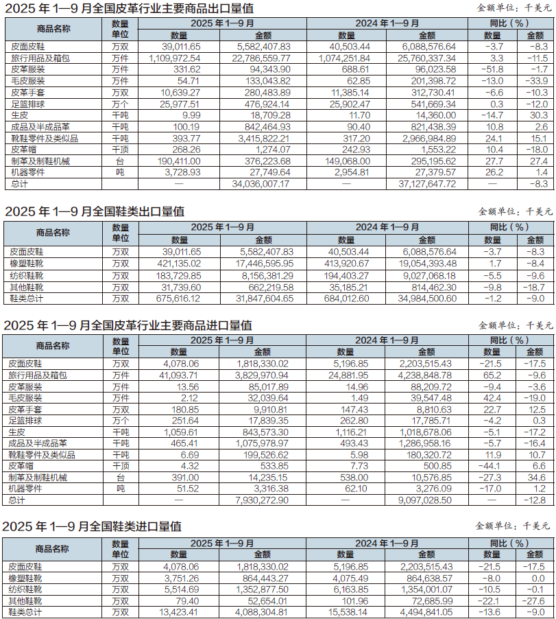 2025年1—9月全国皮革行业进出口量值分析