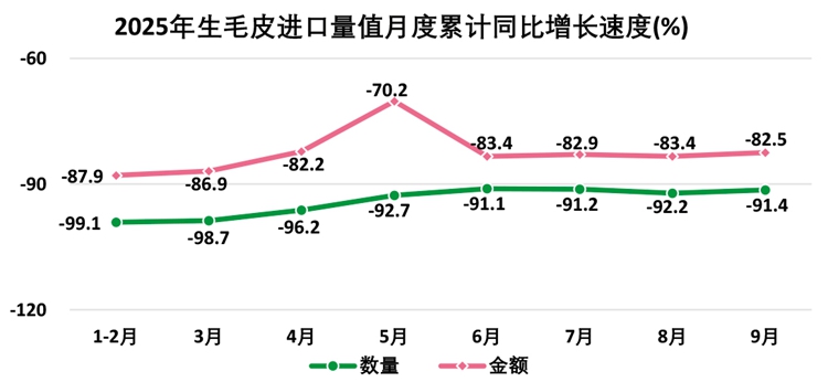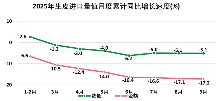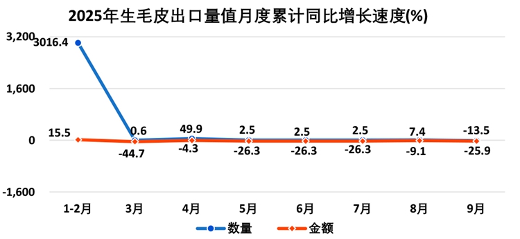 (5)生毛皮出口额降幅加大 进口额降幅收窄