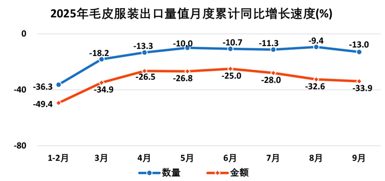 (6)毛皮服装出口额降幅继续加大 进口额降幅收窄