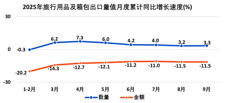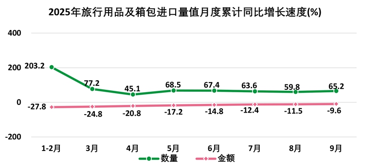 1—9月,全国出口旅行用品及箱包111.0亿件,出口额227.9亿美元;进口旅行用品及箱包4.1亿件,进口额38.3亿美元。