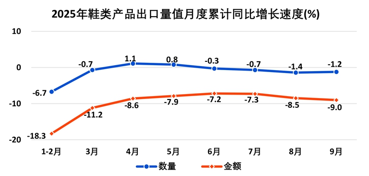 1—9月,全国出口鞋类产品67.6亿双,出口额318.5亿美元;进口鞋类产品1.3亿双,进口额40.9亿美元。