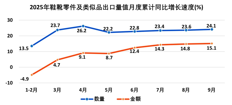(13)靴鞋零件及类似品进出口额增速继续加快