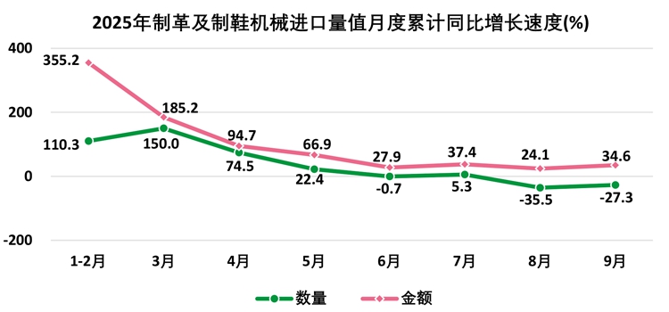 1—9月,全国出口制革及制鞋机械19.0万台,出口额3.8亿美元;进口制革及制鞋机械391台,进口额1,423.5万美元。