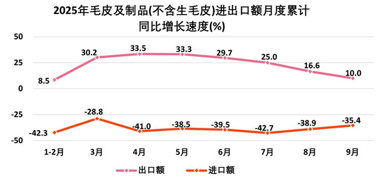 1—9月,全国毛皮及制品(不含生毛皮)出口额4.9亿美元;进口额3.8亿美元。