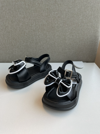 描述:带有蝴蝶结的儿童凉鞋。产品在网上销售,特别是通过Temu。