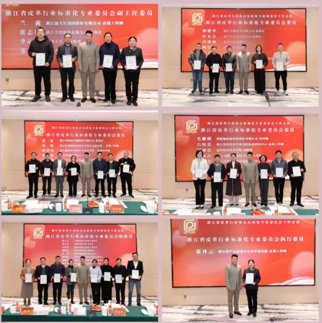浙江省皮革行业协会书记、专职副理事长李伟娟、温州职业技术学院二级教授、协会理事长施凯、协会常务副理事长、标准化专委会主任委员、意尔康股份有限公司董事长单志敏、协会常务副理事长、标准化专委会副主任委员、温州大学二级教授李运河、协会秘书长谢基尔等出席。协会标准化专委会副主任委员兼执行委员张丹云主持会议。
