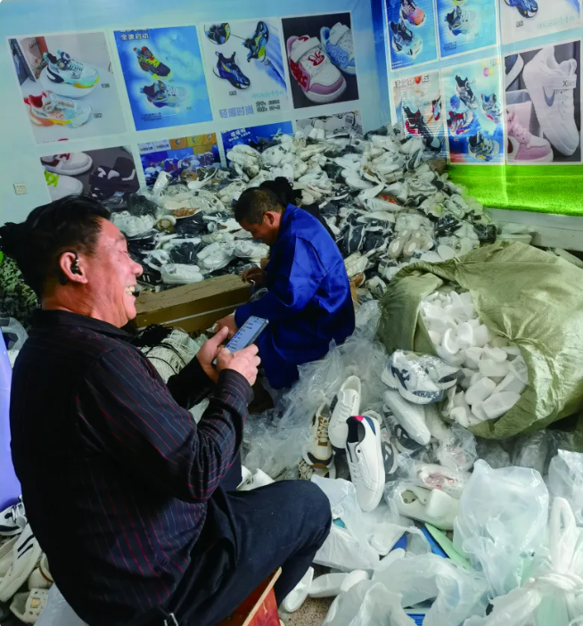 “鞋子来源很杂,大多是温州本土品牌或代工厂的订单余货,没有统一收购标准,都是一单一谈。”林玲称,处理的关键在于收货后的分类与定价。以品质较好、仅因款式过时或订单余量积压的鞋子为例,对外的批发价在十几元到二十几元不等,主要流向国内地摊市场或东南亚批发商。“国内客商拿货,一般会通过摆摊或电商直播形式售卖,售价三四十元。这样算下来,估计有一两倍的利润空间,所以走量很快。”