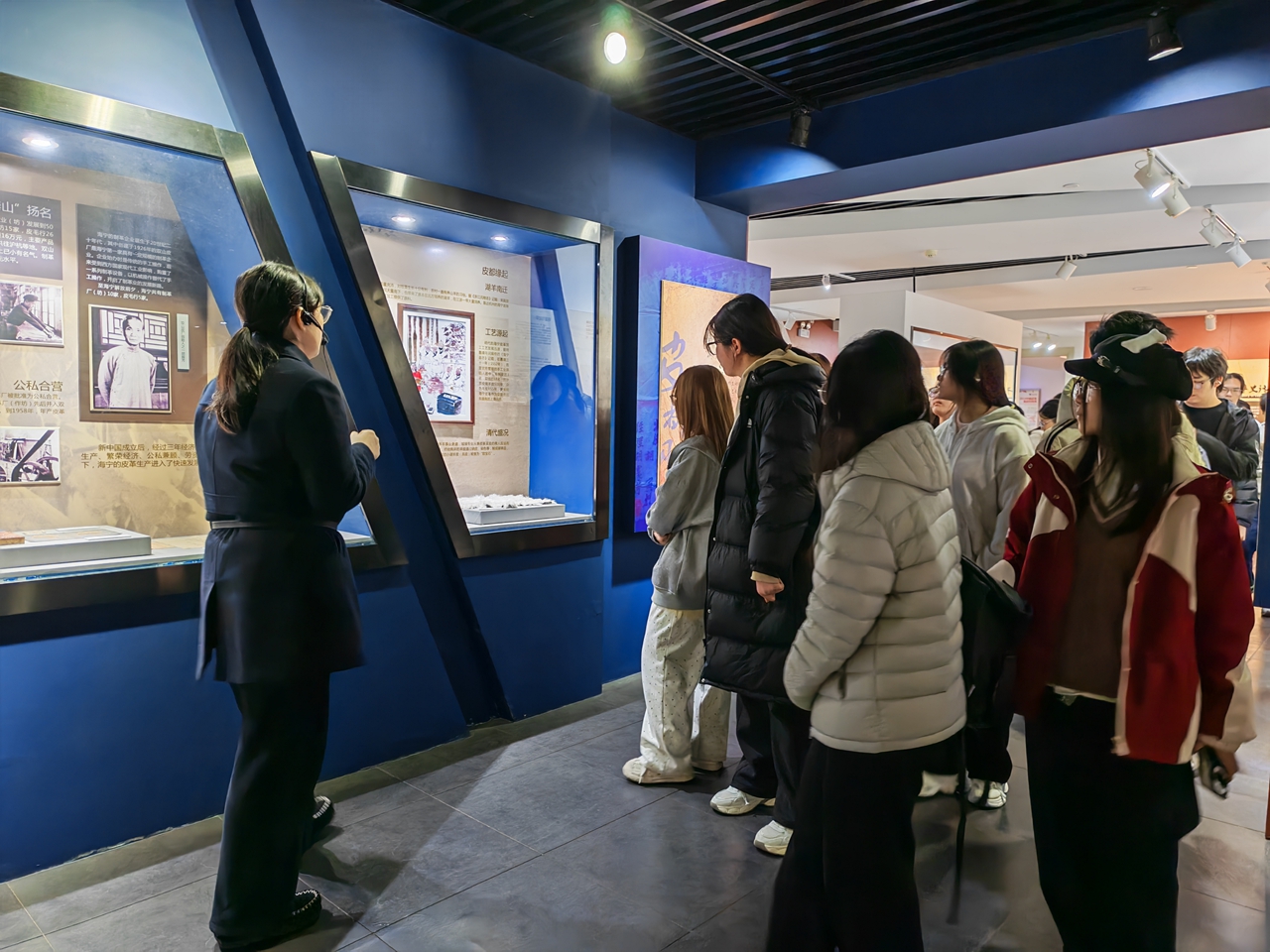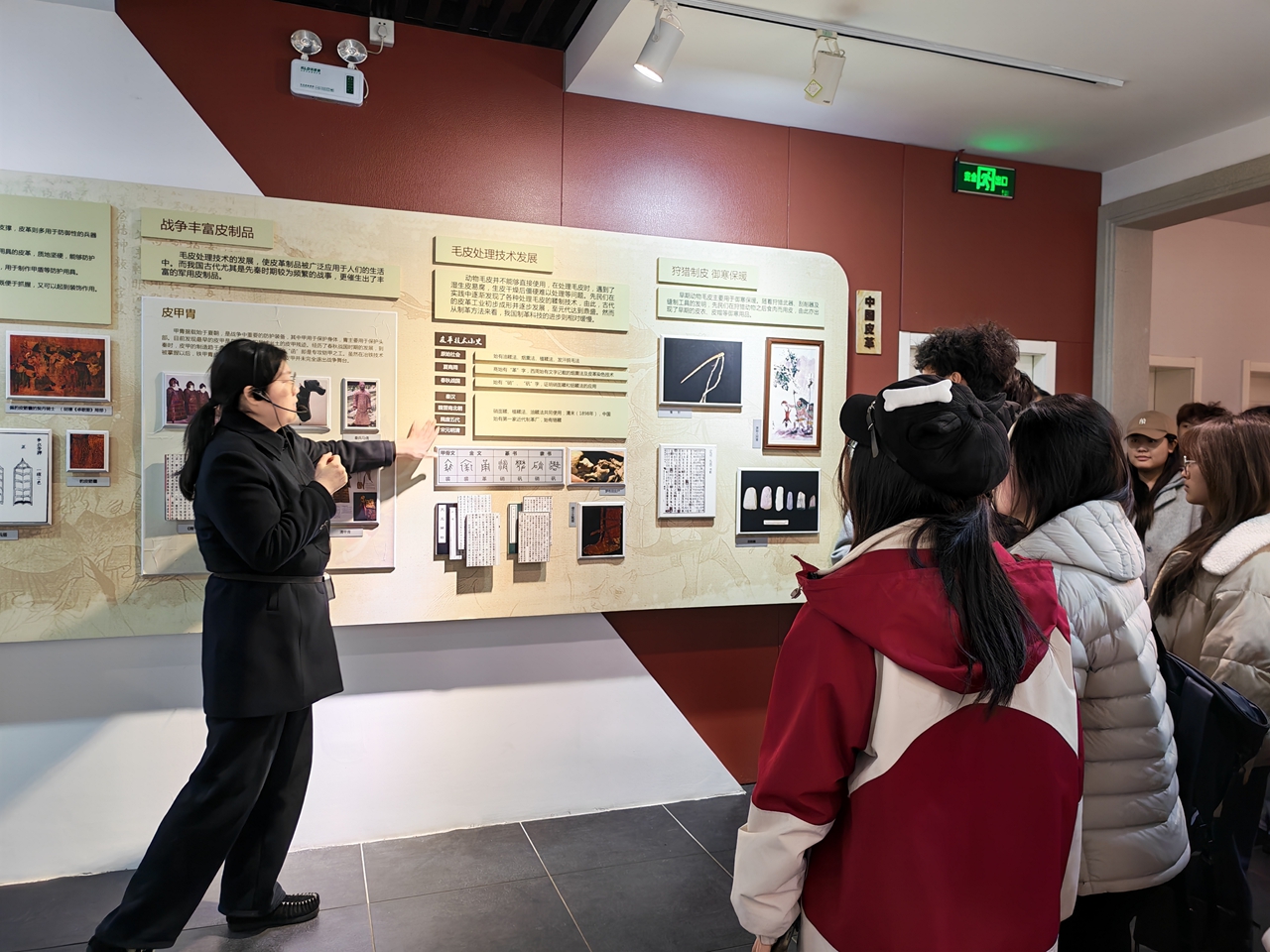 首先,师生一行到海宁中国皮革城皮革博物馆学习,进一步认知皮革产业的发展历史、“从无到有”的海宁皮革发展历史等,感叹皮革产业的历史悠久和皮革人的伟力。随后,到海宁会展中心参加“2026海宁中国国际皮革毛皮时装面辅料展”。本次展会设置皮革毛皮区、时装面料区、原创设计区、智能机械区、辅料配套区及羽绒区六大核心展区,来自土耳其、西班牙以及我国河北、河南、山东等核心产区的100多家皮革毛皮企业全方位展示不同时尚与功能的皮革和拉贡、美利奴、托斯卡纳等高端皮毛一体产品,全方位诠释生态环保、时尚多元、功能实用与可持续发展的核心理念。老师们带领学生感知这些时尚皮革、功能皮革和毛皮的风格与魅力。
