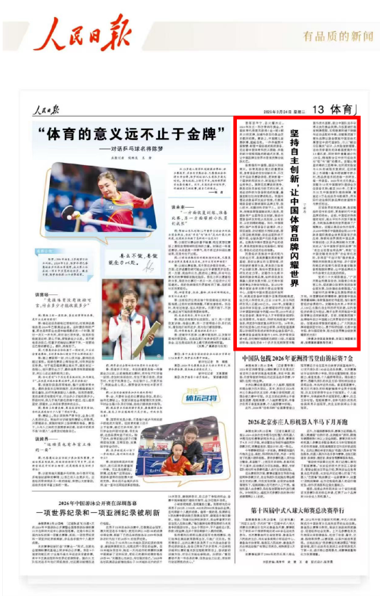 3月24日,《人民日报》刊发全国政协常委、全国工商联副主席、安踏集团董事局主席丁世忠的署名文章《坚持自主创新,让中国体育品牌闪耀世界》。全文如下: