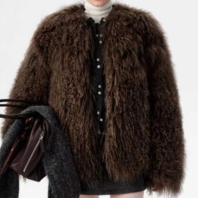 同等面积远轻于普通裘皮,上身轻盈利落不臃肿,打破传统裘皮厚重显拖沓的刻板印象,既能在寒冬提供充足保暖,又能轻松搭配各类穿搭,兼顾保暖需求与利落体态。