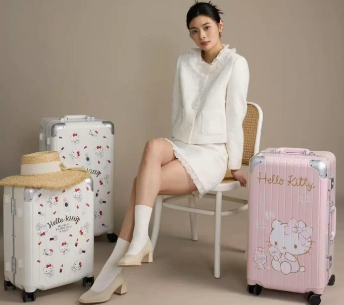 在平湖设计城的展区里,蜜雪冰城、凯蒂猫、酷洛米等热门IP被印在一只只行李箱上,格外吸睛。这些行李箱不仅颜值出众,更藏着一身“黑科技”:智能称重手柄一键显示箱体重量,USB充电口随时为电子设备续航,抑菌手柄守护出行健康……