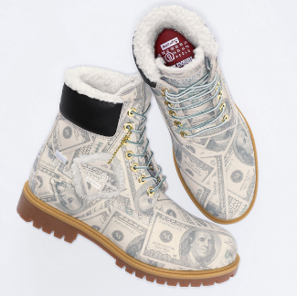 继 2024 年春季首次合作之后,Supreme 再度携手 Maison Margiela 旗下支线 MM6,并邀请 Timberland 共同打造三方联名特别企划。Supreme x MM6 Maison Margiela x Timberland Money Premium 6 英寸防水靴,将本次系列中贯穿的主题元素——满版 100 美元钞票印花——应用在这家户外品牌标志性的工装靴上。鞋款采用牛巴革鞋面,搭配金属金色五金件、双色白绿鞋带,以及鞋舌处 Supreme x MM6 Maison Margiela 联合品牌标签。鞋跟处可见 Supreme 标签,位于 Timberland 标志性的树形标志上方。鞋款内部升级配备了舒适的羊毛皮衬里,与系列中印有钞票图案的羊毛皮飞行员夹克相呼应。在靴款上,毛绒质感同样延伸至三方联名的吊牌。