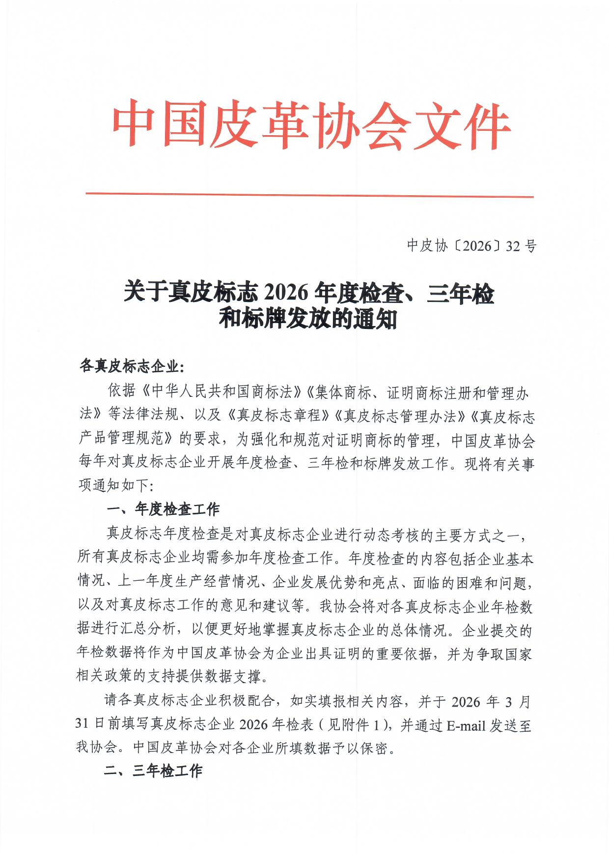 关于真皮标志2026年度检查、三年检