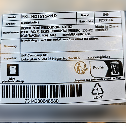 危害:化学风险。该产品的塑料材质中二(2-乙基己基)邻苯二甲酸酯(DEHP)的含量过高(测量值:按重量计 0.5%)。这种邻苯二甲酸酯可能对生殖系统造成损害,从而危害健康。