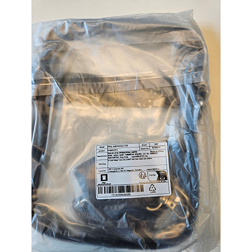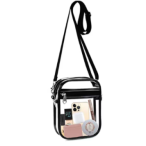 描述:一款透明的配有黑色肩带的PVC手提包。产品在网上销售,特别是通过www.elkjop.no。
