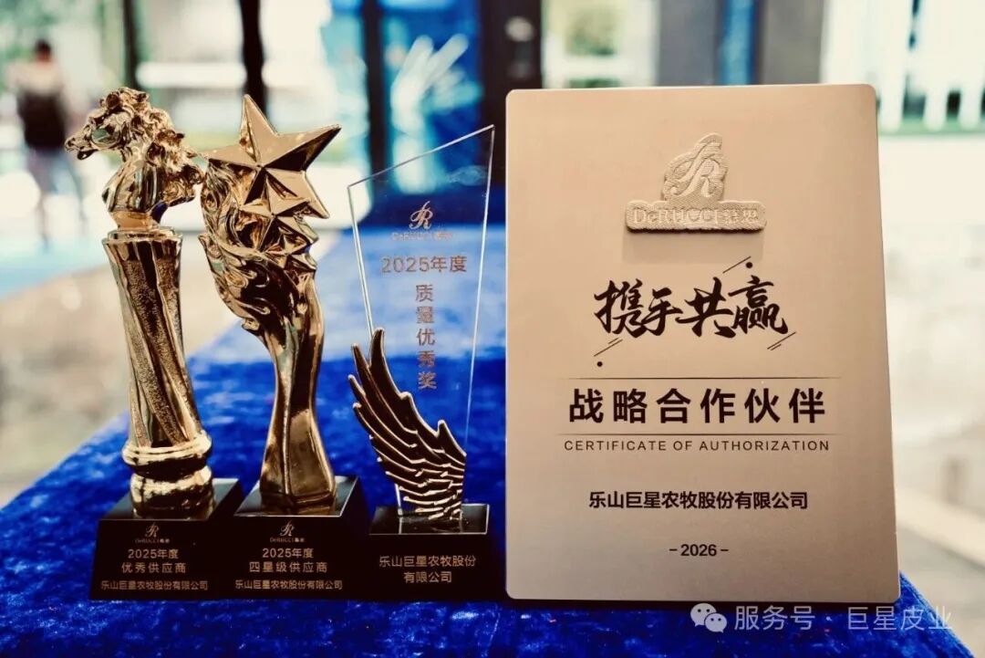 巨星荣获:"真皮类"唯一战略合作伙伴、2025年度优秀供应商、四星级供应商、质量优秀奖