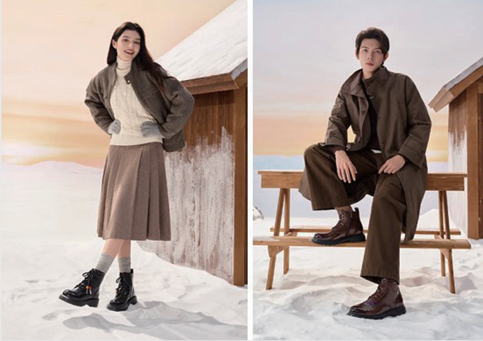 奥康冬日默契系列—从初雪到圣诞,从纪念日到跨年夜,让脚步见证每个心动时刻, 用温暖守护与型格陪伴,定义属于你们的冬季浪漫。该系列采用高弹橡胶大底应对多变地形,行走如履气垫云端, 7孔系带精准包裹,一 键切换工装飒爽与高街慵懒。