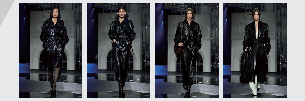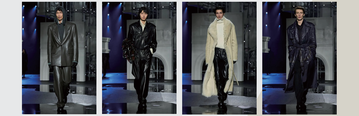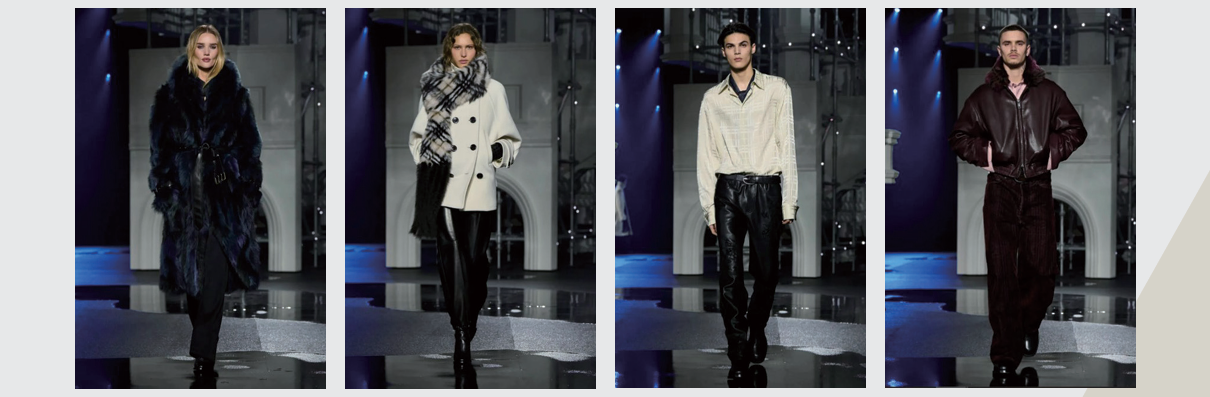 本次Burberry大秀以雨夜中的伦敦为创作主题。 在脚手架与街灯映照下,解构的伦敦塔桥剪影与迷离霓虹在烟雾中勾勒出雨夜的轮廓,上演属于Burberry 的风衣美学。从远离城间、奔赴乡野与户外音乐现场的旅程回归,Burberry 2026冬季系列重返伦敦都市街头,回归首席创意总监Daniel Lee所称的“独属伦敦的夜行姿态”。