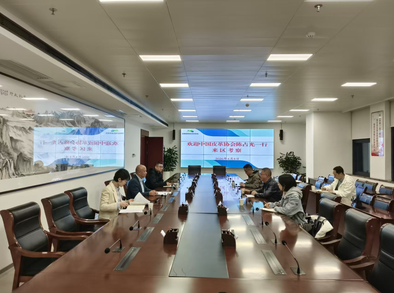 4月8日,中国皮革协会副理事长陈占光、副秘书长路华、鞋材专委会主任胥晨一行赴经开区,就皮革及制鞋产业发展情况开展专题调研。经开区党工委委员、管委会副主任陈少兴陪同。