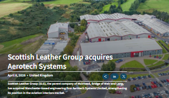 According to filings at Companies House, Andrew and Nicholas Muirhead, alongside Michael Carnachan, were appointed directors of Aerotech at the end of March, coinciding with the resignation of founder Graham Whiteman. The Muirhead division of SLG specialises in manufacturing mass transport leathers including for the global aviation sector.