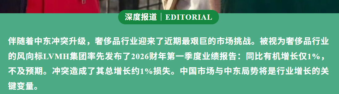 作为自中东冲突升级以来奢侈品行业第一份大型上市公司财报,LVMH集团显得尤为重要。LVMH集团表示,在地缘政治和经济环境持续动荡、且受中东冲突加剧影响的情况下,集团「展现出良好的韧性」。