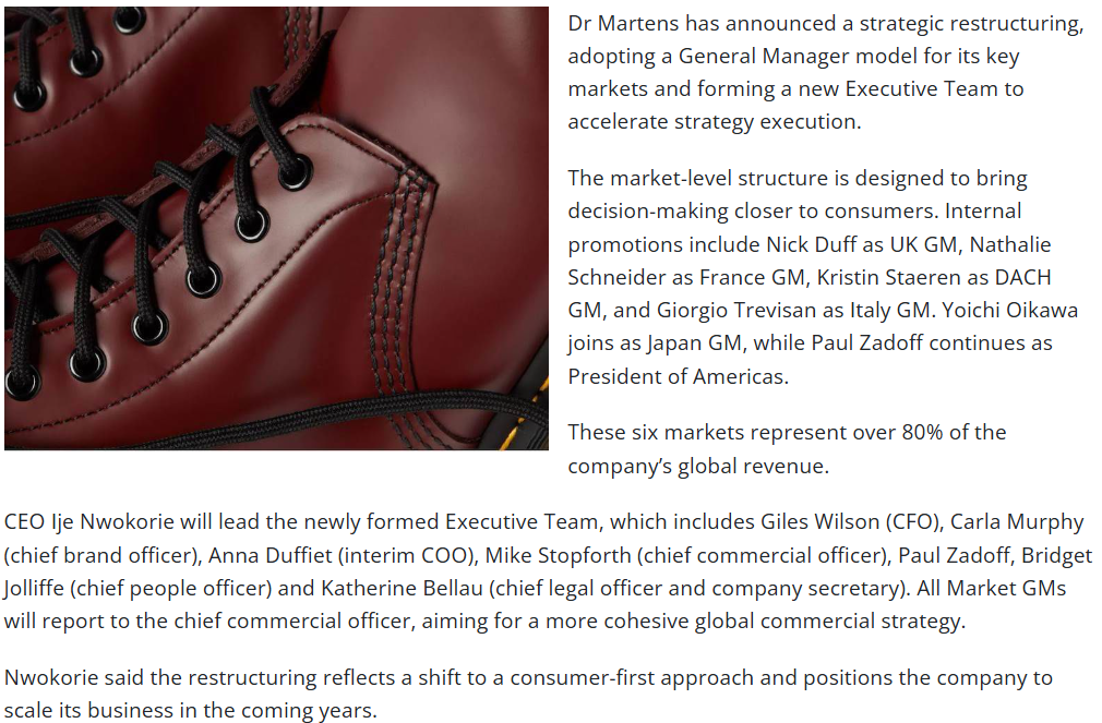 Dr Martens shifts to consumer-focused GM structure