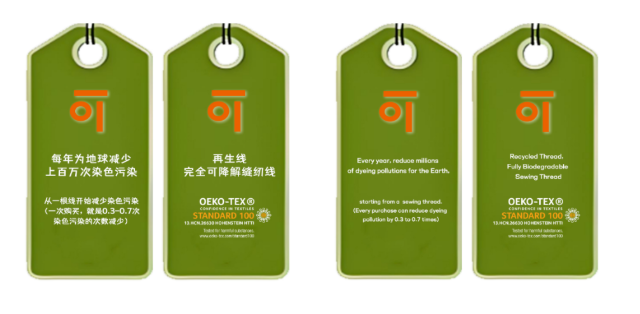 海恩斯坦在其官方论述中量化指出:每购买一件使用一可环保吊牌的鞋服,相当于为地球减少0.3至0.7次染色污染。该结论基于严格检测,并成功获得OEKO-TEX STANDARD 100婴幼儿产品级认证。这意味着,生产企业不仅获得了国际实验室的量化背书,更获得了一枚可直接悬挂于成品上的实体环保吊牌。这枚吊牌将抽象的减排数据转化为消费者和品牌方可直接感知的视觉信任,极大地增强了企业环保主张的说服力。
