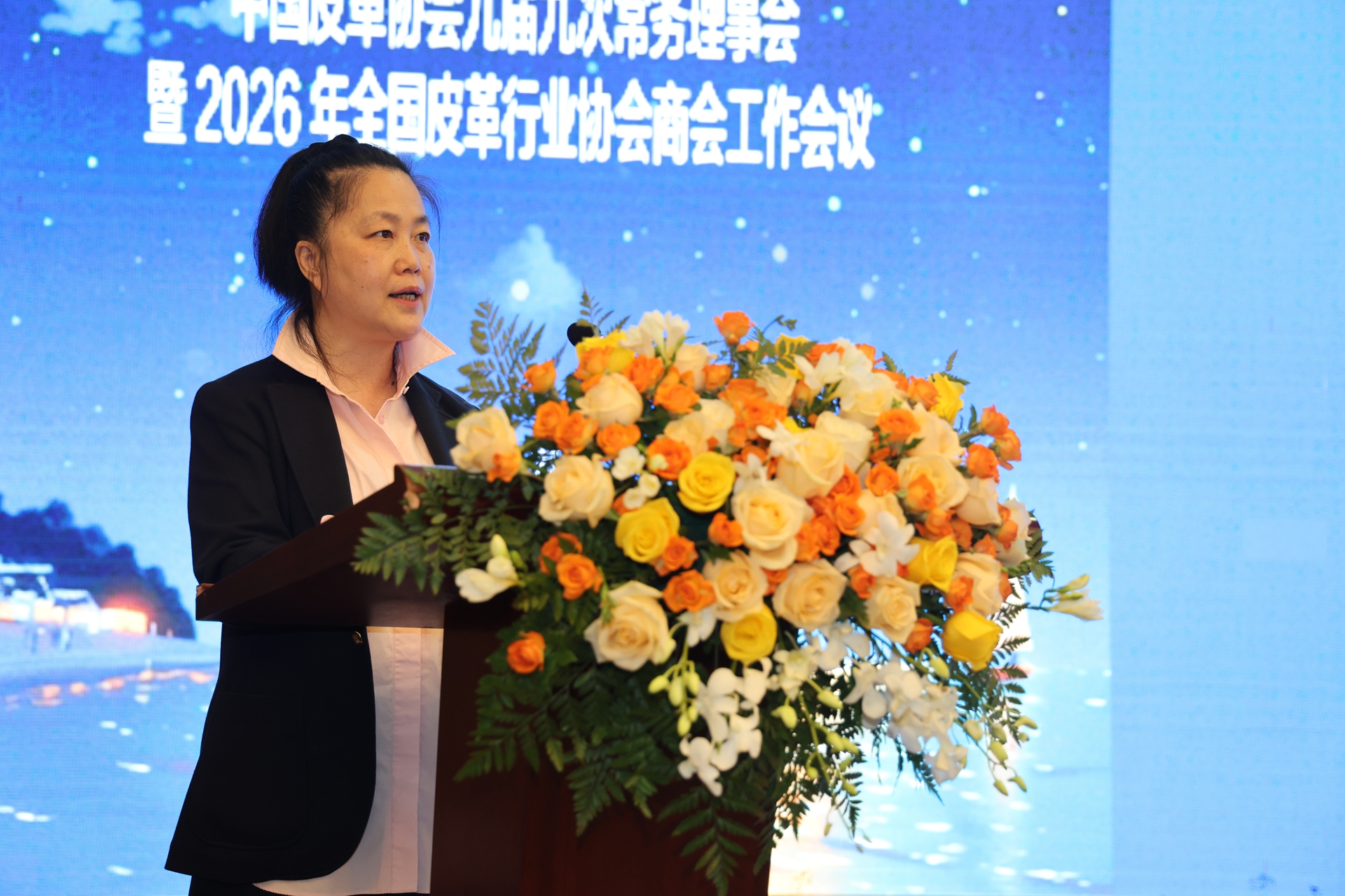 中国皮革协会秘书长张燕介绍了2026年中国皮革协会重点开展的工作计划,她围绕培育新质生产力、促进高质量发展的目标,从强化行业调研和经济运行分析,为产业健康发展创造良好政策环境;推动企业科技创新步伐,引领皮革行业高质量发展;持续推动行业环保自律,保持行业绿色低碳发展;强化品牌建设与发展,推进皮革和毛皮宣传和推广;加强沟通、调研和有效引导,推动皮革特色区域和专业市场健康发展;强化标准引领作用,助力行业可持续发展;弘扬设计创新和工匠精神,强化行业人才教育培养;培育拓展多元化市场,积极开展国际交流与合作;加强信息服务功能和渠道建设,为会员提供更好的服务;组织召开行业重要会议,搭建行业交流合作平台;发展新会员,强化协会自身建设,提高服务水平与能力;加强协会党建工作,引领行业高质量发展等12个方面条分缕析地介绍了中国皮革协会的具体工作计划,力求全面做好高质量服务,引领行业创新发展。