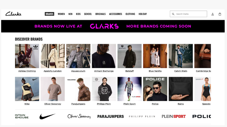 这一全新数字购物平台名为 Brands now at Clarks,是品牌首次在自营电商平台上引入超100个合作品牌,消费者可一站式购买女装、男装、童装、配饰及各类生活方式产品。合作品牌既包含 Adidas、Nike、Hugo Boss、Tommy Hilfiger 等成熟品牌,也有 Apatchy London 等独立设计师品牌。
