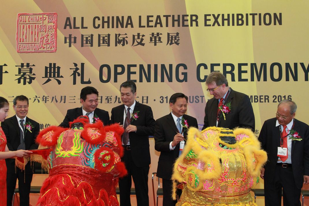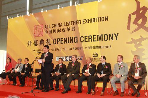 • 2014年中国国际皮革展共吸引来自意大利、西班牙、葡萄牙、印度、韩国等38个国家和地区的1337家展商参展,总展览面积达92000平方米。展会上,数家顶尖化工品供应商和生产商,如朗盛、斯塔尔等发布了一系列新产品。国内知名企业如奥康、康奈、兽王等行业领军企业也携带新品亮相。山东高密、成都武侯、桐乡石门等具有地方特色的国内鞋业产业基地以集群方式亮相展会。