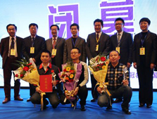 中国皮革网记者与第一名获奖者王安宝合影留念