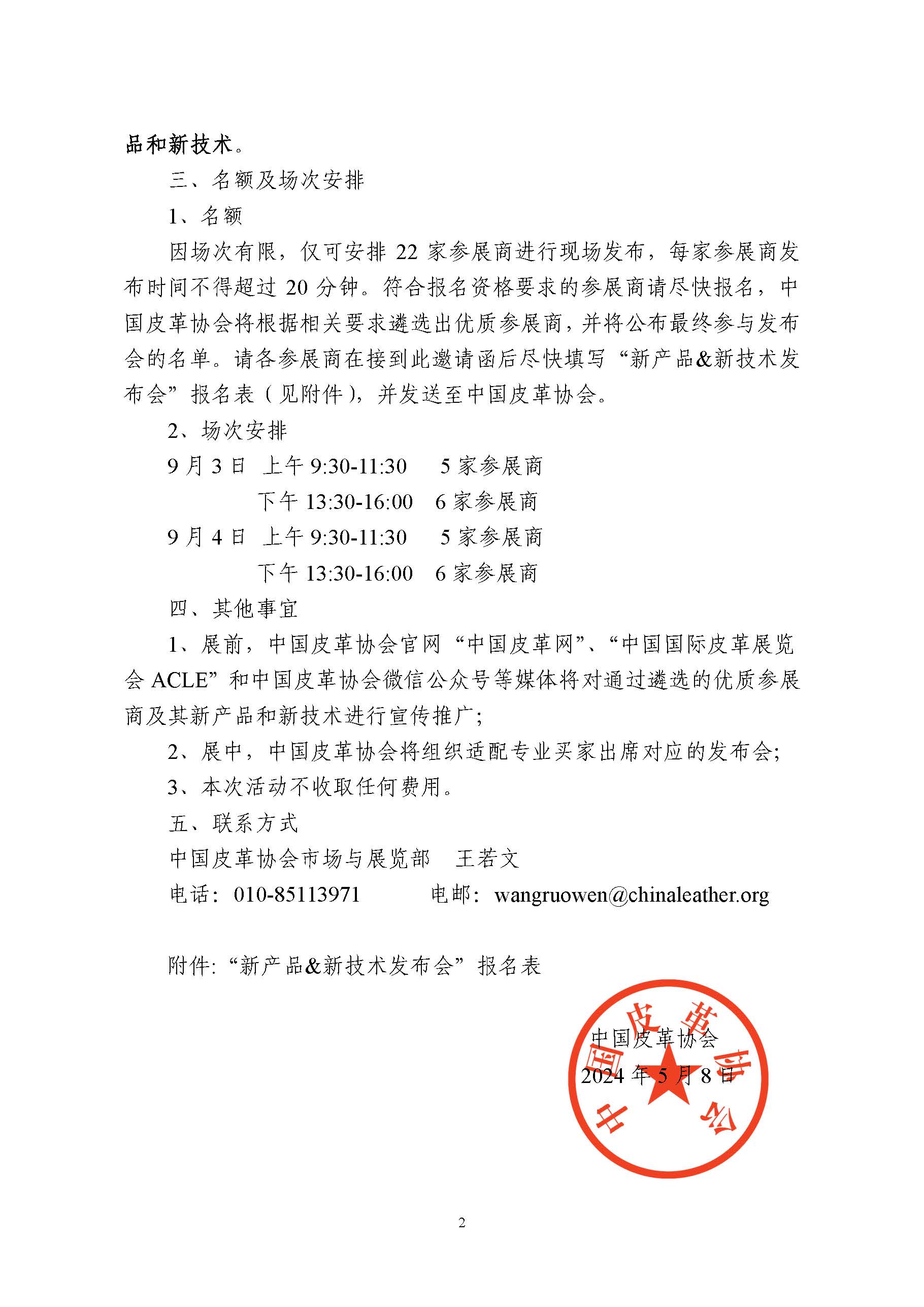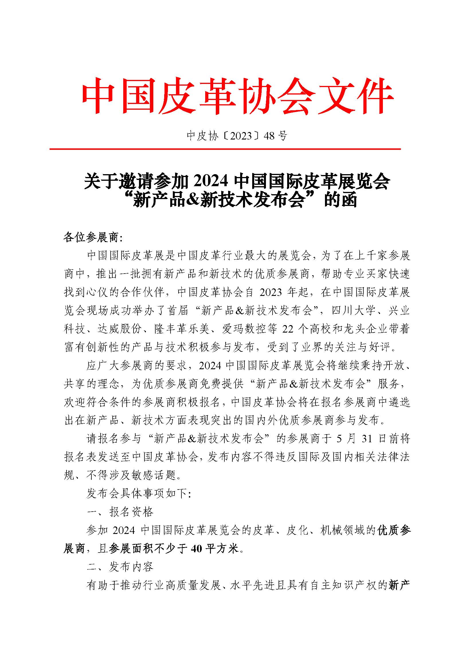 关于邀请参加2024中国国际皮革展览会"新产品&新技术"发布会的函