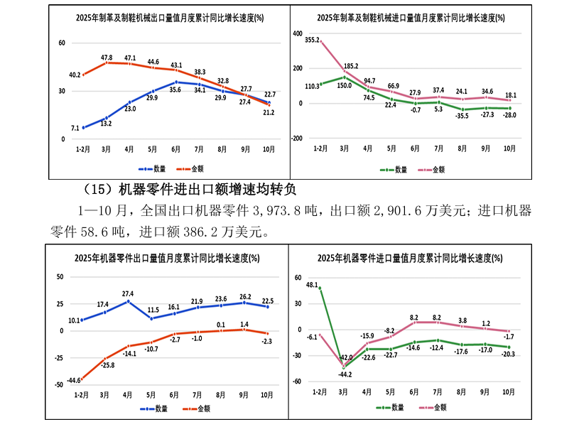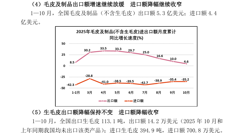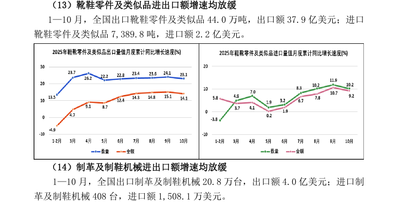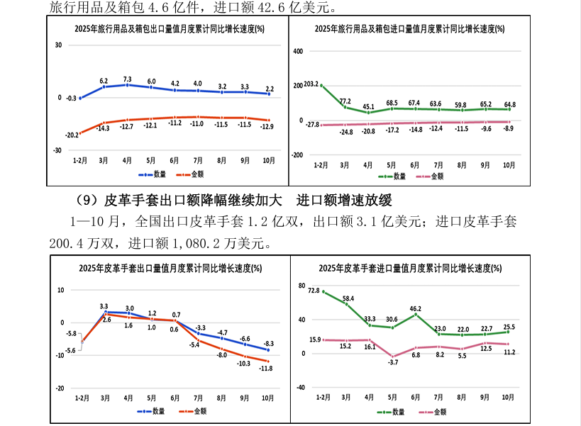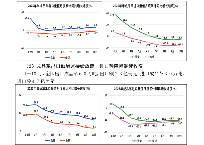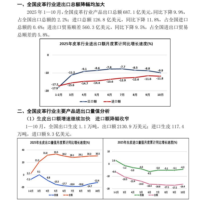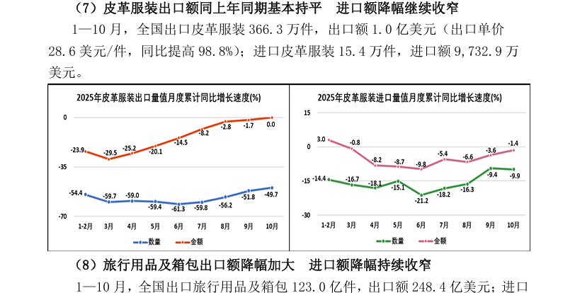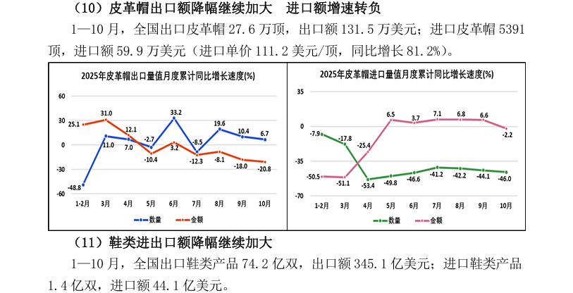 2025年1—10月全国皮革行业进出口量值分析