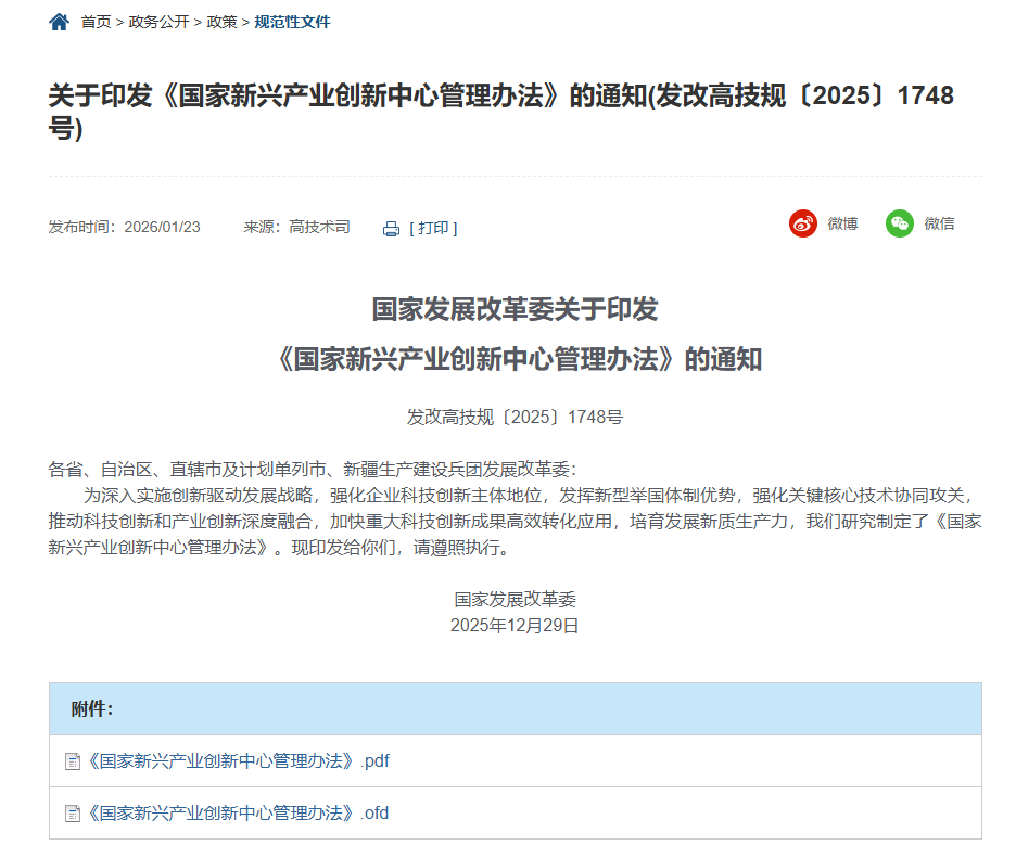 家发展改革委关于印发《国家新兴产业创新中心管理办法》的通知发改高技规〔2025〕1748号各省、自治区、直辖市及计划单列市、新疆生产建设兵团发展改革委:为深入实施创新驱动发展战略,强化企业科技创新主体地位,发挥新型举国体制优势,强化关键核心技术协同攻关,推动科技创新和产业创新深度融合,加快重大科技创...